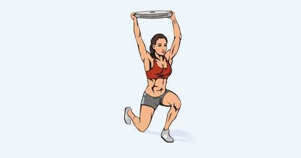 В ходе выполнения выпадов с блином над головой активно задействуются: